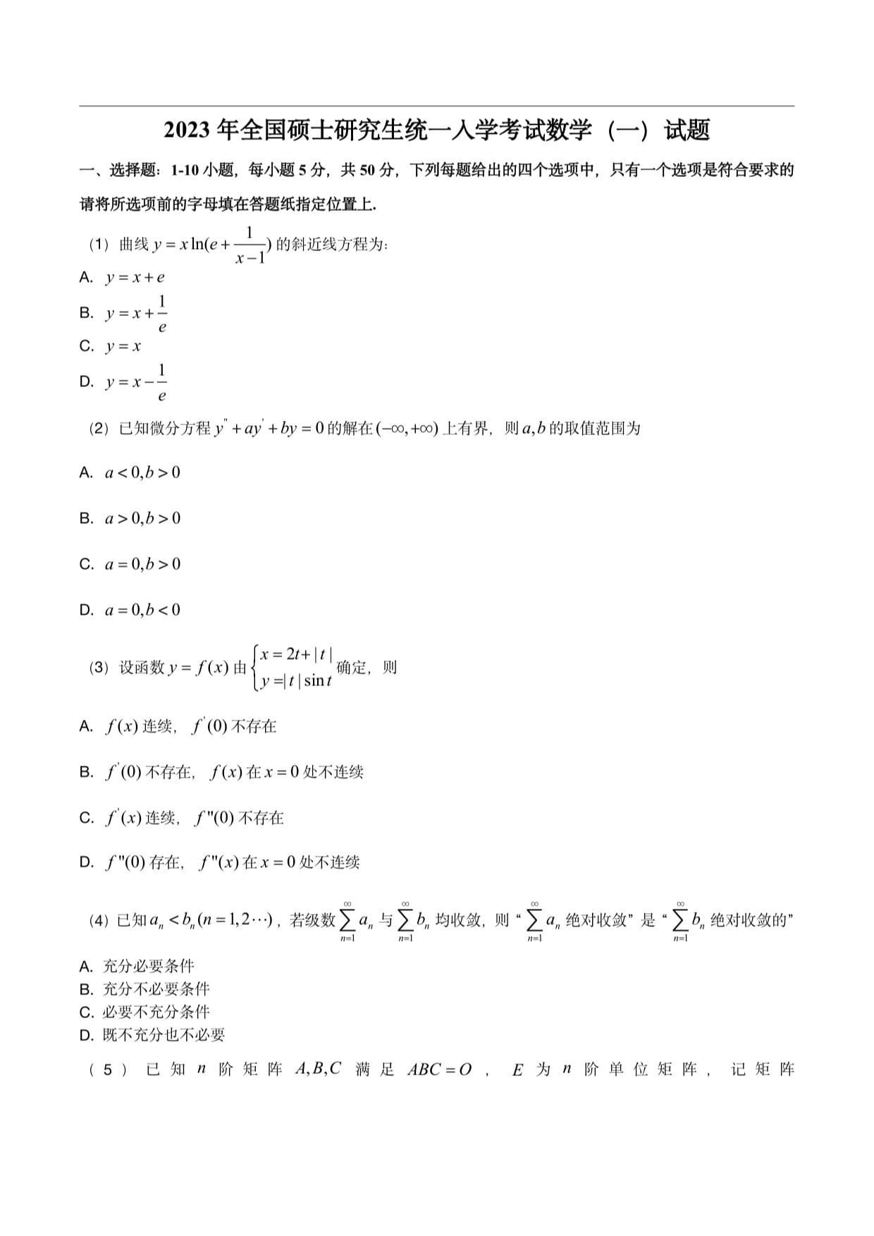 以上就是2023研究生考试数学一真题的全部内容,考研冲刺阶段的同学们可以根据自身复习情况,结合历年考研真题中的易错点去梳理答题思路,保持每天练题不生疏。