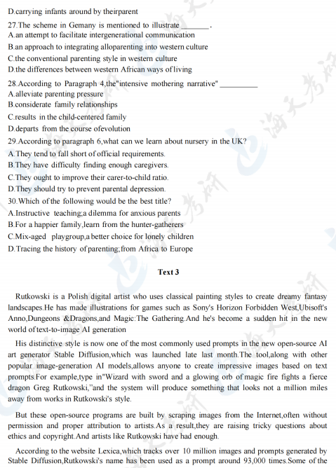 以上就是海天考研网为各位考生整理的2024考研英语一真题及解析汇总,持续为考研学子更新其他考研科目考研真题及答案解析,各位考生可以根据自身需要关注收藏,及时查看完整版2024考研真题及答案解析。